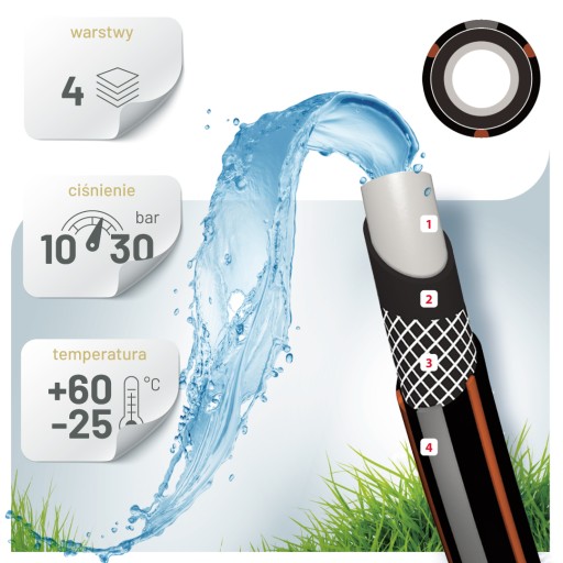 - Wąż ogrodowy do wody 1"(25mm) 50m Carbon+ 4-warstwowy CP1"-50M IMET