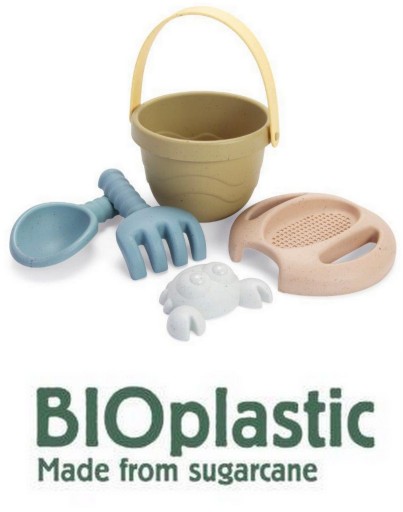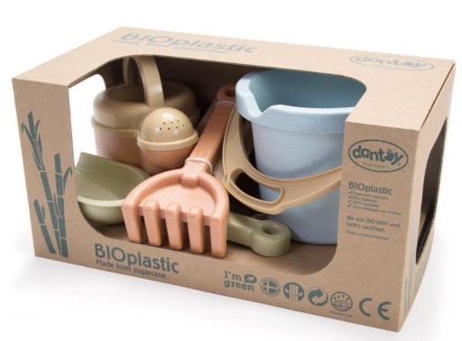 Zestaw do piasku BIO TINY produkowany jest w Danii z bioplastiku wykonanego z trzciny cukrowej, która w 100% jest zrównoważonym surowcem. To sprawia, że posiada certyfikat Nordic Swan Ecolabel. Produkty te są przyjazne dla środowiska i nie zawierają szkodliwych chemikaliów. Opakowania wykonane są z tektury z recyklingu.