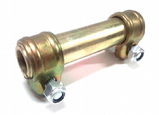 Łącznik końcówek drążków kierowniczych długi Polonez Caro Atu. W skład jego wchodzą dwie obejmy oraz rurka łącząca.
