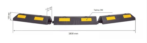 Wymiary separatora parkingowego: Długość 1830mm, szerokość 145 mm, wysokość 120 mm, Waga: 19 kg