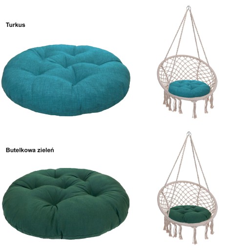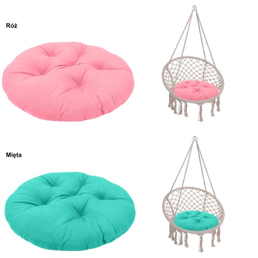 - Projekt poduszki stworzony specjalnie do huśtawek plecionych (o średnicy siedziska ok. 60cm)