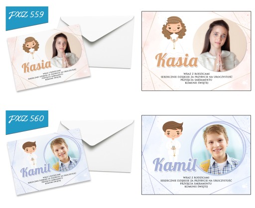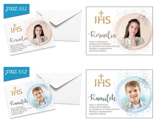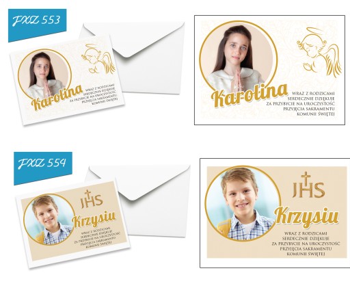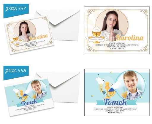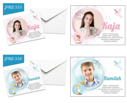 Pamiętaj aby przesłać nam zdjęcie oraz imię, a my bezpłatnie umieścimy je na podziękowaniach. Dzięki temu otrzymasz podziękowania wraz z kopertami gotowe do wręczenia.