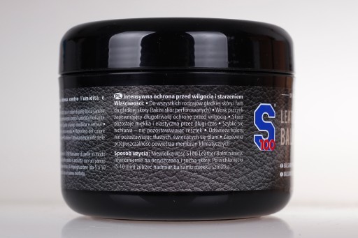 S100 Leather Balm to balsam do gładkich skór na bazie naturalnych olejków intensywnie pielęgnujący i chroniący skórę. Zapewnia długotrwałą ochronę przed negatywnym wpływem wilgoci i starzeniem się skóry. Balsam odświeża kolory nie pozostawiając przy tym tłustych plam na jej powierzchni. Stosowany na produktach z membranami wodoodpornymi nie ogranicza jej działania i przepuszczalności powietrza.