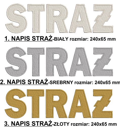 - Kolor napis "STRAŻ" (srebrny, złoty, biały, czarny)