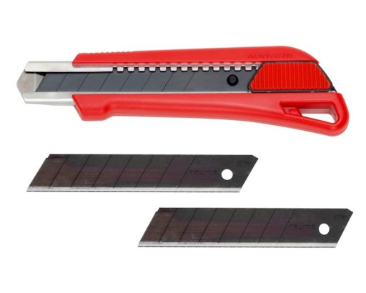 Nóż tapicerski, uchwyt z tworzywa sztucznego z suwakiem i dwoma zapasowymi ostrzami 18 mm