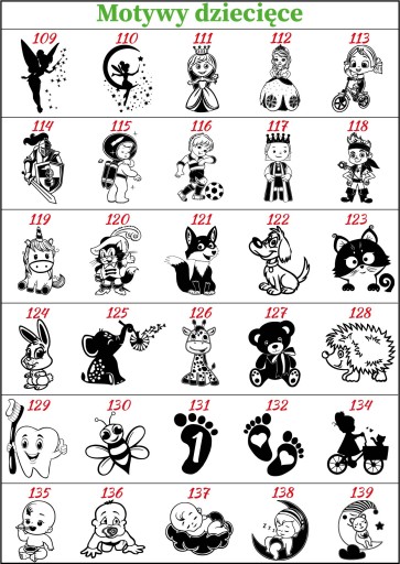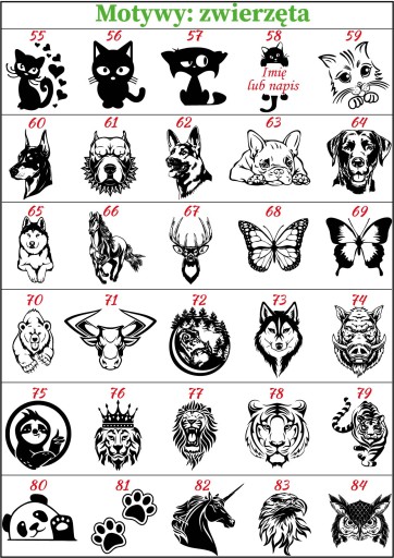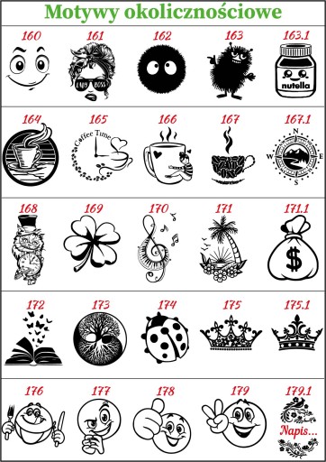 Wybierz numer obrazka z dostępnych szablonów. Można zaproponować swój obrazek (usługa odpłatna; konieczny format wektorowy! .ai; .svg). Należy wymyślić także tekst, który zostanie wygrawerowany pod obrazkiem. Optymalna ilość znaków(liter) to mniej więcej 20. Teksty zawierające więcej niż 20-30 znaków mogą być słabo czytelne.