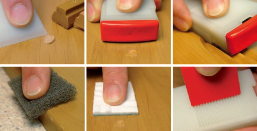 - Praca tarką: Część szpachelki z systemem karbów (tarka) służy do usuwania nadmiaru materiału wypełniającego. Dotyczy to wszystkich rodzajów wypełniaczy i wosków. Do obróbki krawędzi zewnętrznych używać strony z zaokrąglonymi karbami, do pozostałych strony z ostrymi karbami. Przy kątach wewnętrznych zaokrąglonych używać brzegu szpachelki z zaokrąglonymi karbami, przy pozostałych z ostrymi karbami.