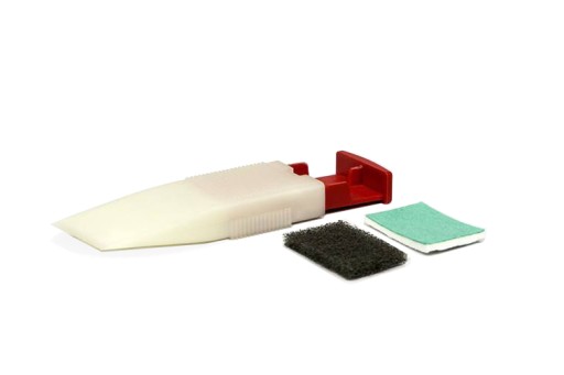 - Czyszczenie szpachelki: Do czyszczenia tarki należy używać czerwonej wkładki z grzebieniem znajdującej się w korpusie szpachelki.