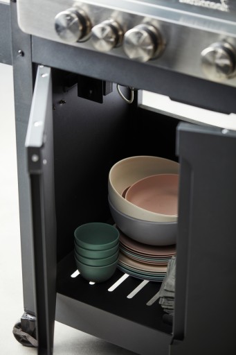 Super wydajne palniki zapewnią szybkie osiąganie wysokich temperatur, niezależnie od warunków atmosferycznych. Pojemna szafka pomieści wiele akcesoriów.