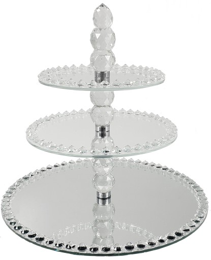 PATERA SZKLANA - LUSTRZANA Z KRYSZTAŁOWYMI ZDOBIENIAMI