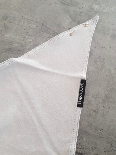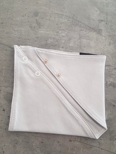 Całoroczna pastelowa apaszka zapinana na 2 zatrzaski (napy), umożliwia dostosowanie obwodu do szyi dziecka. Bardzo wygodna i praktyczna.