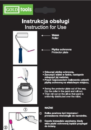 Wałek posiada lekki i ergonomiczny uchwyt z tworzywa sztucznego, dzięki czemu nawet długa praca z nim nie jest męcząca. Rękojeść narzędzia została wyposażona w otwór do zawieszenia wałka po skończonej pracy.