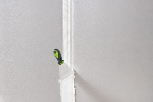 Taśma z włókna szklanego do łączenia płyt gipsowo-kartonowych Taśma idealnie zatapia się w masach gipsowych, dzięki czemu nie odznacza się na powierzchni ściany lub sufitu.