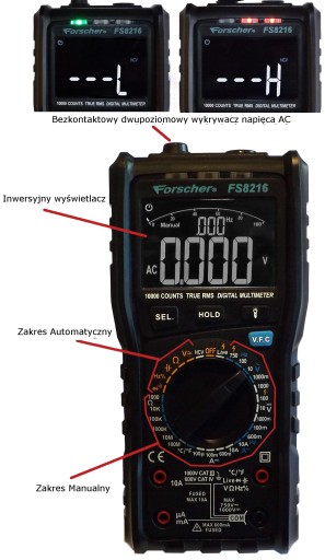 Multimetr FS8216 Forscher łączy w sobie cechy multimetrów automatycznych oraz manualnych :