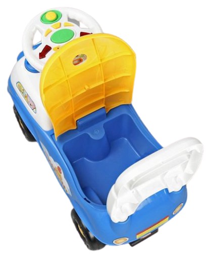 Pod siedzeniem znajduje się praktyczny schowek na drobne zabawki lub inne małe rzeczy.