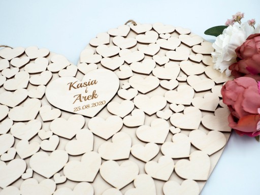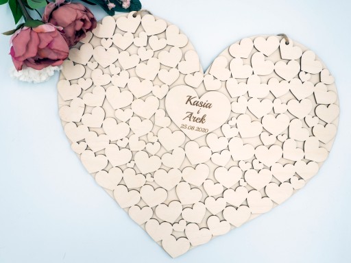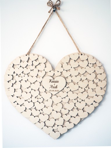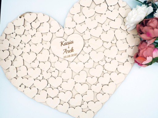 Duże serce 3D z serduszkami jako księga gości+ tabliczka.