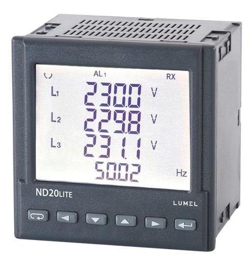 Miernik wyróżnia wysoka dokładność pomiaru, czytelny podświetlany wyświetlacz LCD oraz atrakcyjna cena w stosunku do oferowanych funkcji pomiarowych. Wejścia pomiarowe miernika są programowalne, co umożliwia współpracę z dowolnymi przekładnikami prądowymi, zarówno w sieciach niskiego, średniego jak i wysokiego napięcia. Konfigurowalny układ pracy miernika pozwala go użyć zarówno w sieciach 3-fazowych (3- i 4-przewodowych) jak i w sieciach 1-fazowych. Miernik ND20LITE wyposażony jest również w dodatkowe wyjścia: alarmowe, cyfrowe RS-485 Modbus oraz impulsowe.