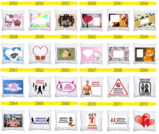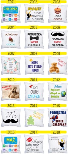 Poniżej dostępne wzory poduszek: