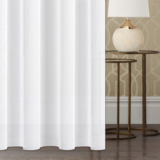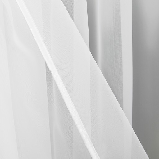 Firana gładka, uszyta z białego woalu, prezentuje się niczym delikatna kurtyna do magicznego teatru światła.