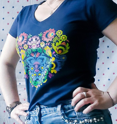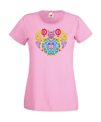 Koszulka damska z kobiecym i pełnym kolorów motywem góralskiego serca a'la Cleo.