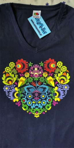 Aukcja dotyczy KOSZULKI DAMSKIEJ kolor do wyboru z nadrukiem serca folk.