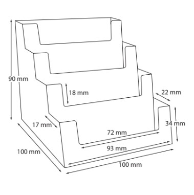 Funkcjonalny stojak na wizytówki, który posiada aż 4 kaskadowe kieszonki. Takie rozwiązanie powoduję idealny dostęp do każdej wizytówki. Stojak został wykonany metodą odlewu z formy dzięki czemu jest bardzo trwały i odporny na uszkodzenia. Połączenie tych wszystkich cech, czyni ten model doskonałym stojakiem do prezentacji wizytówek.