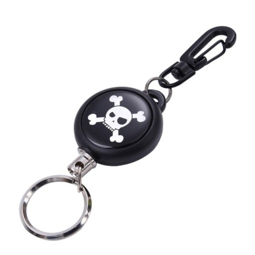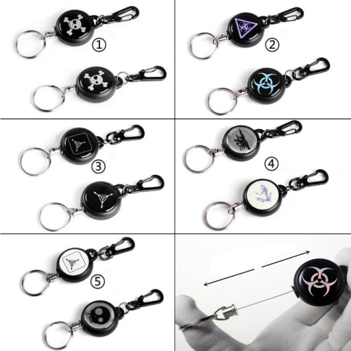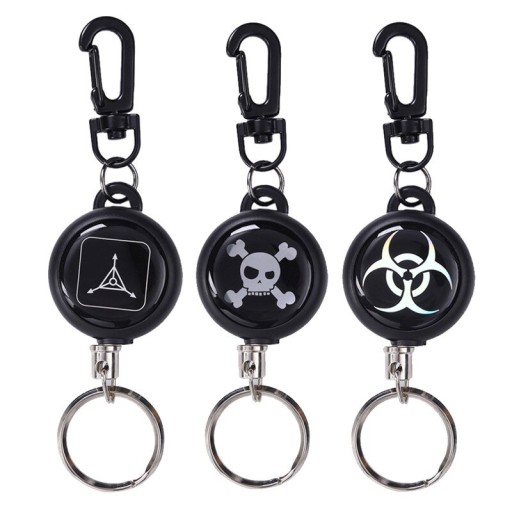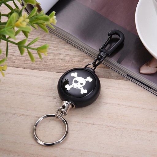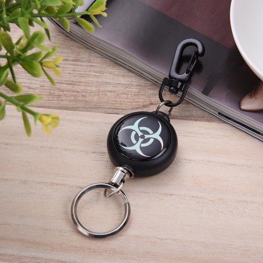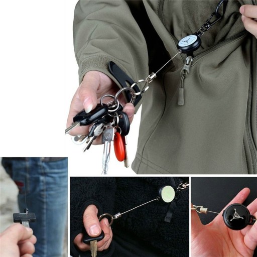 MOCNY RETRAKTOR (zwijana smycz / linka metalowa), w formie breloka z karabińczykiem (1 sztuka).