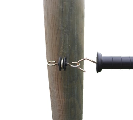 Zestaw przeznaczony do ogrodzeń elektrycznych składający się z rączki i izolatora bramowego. Służy do robienia bram i furtek w pastuchu.