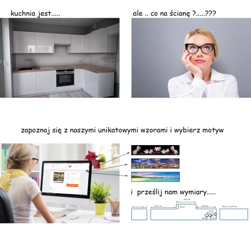 Wybór grafiki jest dowolny. Nasz zespół dołoży starań aby optymalnie i proporcjonalnie rozplanować wzór do każdego indywidualnego rozmiaru. W cenie zakupu są trzy propozycje graficzne. Jeżeli otrzymamy zdjęcie kuchni lub projektu możemy również za dopłatą 50,00 zł zaoferować dodatkowo symulacje kuchni z zaprojektowanymi wzorami, co znacznie ułatwia podjęcie ostatecznej decyzji.