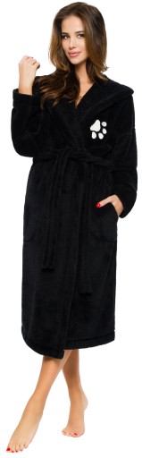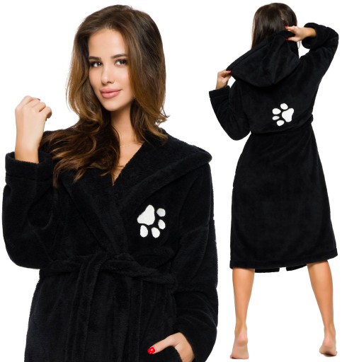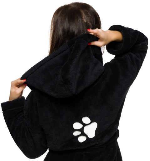 Dla miłośników zwierząt, szlafrok z haftem psiej łapki - na wysokości biustu i na plecach.