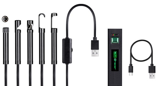 - Zestaw końcówek (hak, magnes, lusterko) pozwoli nie tylko podejrzeć, ale również wydobyć obiekt z najbardziej niedostępnych zakamarków, usztywniany kabel wideo