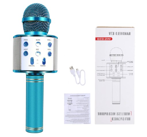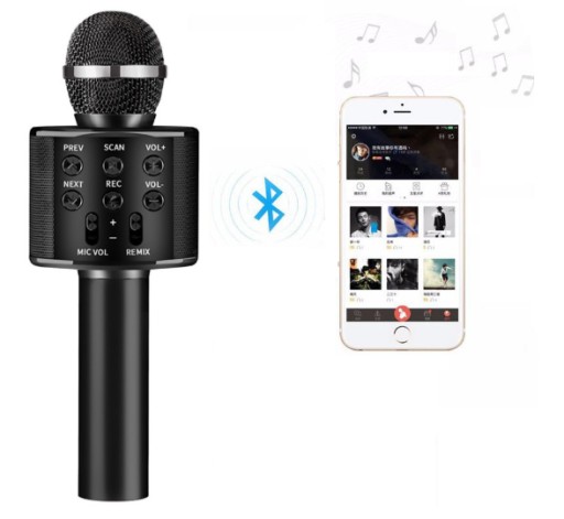 Bezprzewodowy mikrofon karaoke bluetooth pozwala na połączenie się ze smartfonami, tabletami lub telewizorami SMART TV z systemem operacyjnym Android i odtwarzanie muzyki przez wbudowany głośnik za pomocą łączności bluetooth lub bezpośrednio z karty pamięci (głośnik posiada slot na karty sd).