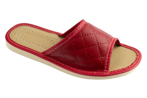 Pantofle wykonane są z wysokiej jakości skóry ekologicznej, łatwej w utrzymaniu w czystości.