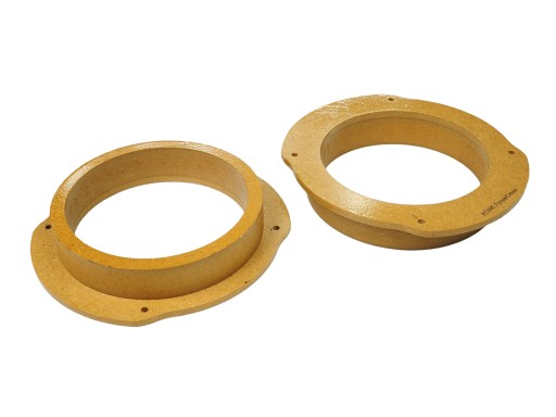 Impregnowane i dwukrotnie lakierowane dystanse głośnikowe wykonane z MDF, przeznaczone do stabilnego montażu głośników w fabrycznych miejscach montażowych samochodu. Jakość i dokładność wykonania zapewnia technologia CNC. Dystanse firmy Powe po frezowaniu są dodatkowo szlifowane, a następnie nanoszone są 3 warstwy zabezpieczające przed wilgocią (jedna warstwa impregnacji i dwie warstwy bezbarwnego lakieru). Szlifowanie powierzchni dystansu po frezowaniu oraz po lakierowaniu pozwala uzyskać szczelną, gładką powłokę ochronną na całej powierzchni, w tym również na linii cięcia, co skutecznie zapobiega wnikaniu wilgoci do wnętrza MDF-u.