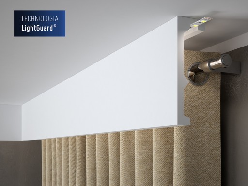 Listwy karniszowe Mardom Decor to doskonałe rozwiązanie dla osób chcących zamaskować karnisz, który często nie stanowi atrakcyjnej dekoracji wnętrza. Specjalnie wyprofilowany kształt pozwala na umiejscowienie z tyłu listwy oświetlenia LED, dodatkowo eksponującego aranżację przestrzeni okiennej. Listwy stanowią wygodną alternatywę dla zabudowy kartonowo-gipsowej, która wymaga znacznie większych nakładów finansowych i czasowych.