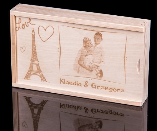 Prezentujemy pudełko na zdjęcia o wymiarach 15 x 10 mm z możliwością personalizacji. Nasz produkt do doskonały wybór dla fotografów ślubnych chcących wzbogacić swoją ofertę o designerskie pudełko na odbitki. Każdy produkt posiada dwie komory. Jedną większą na zdjęcia, a drugą mogącą pomieścić pendrive. Dodatkowo każde z pudełeczek wypełnione jest wełną drzewną, co dodatkowo uatrakcyjnia wygląd oraz podkreśla rustykalny charakter produktu.