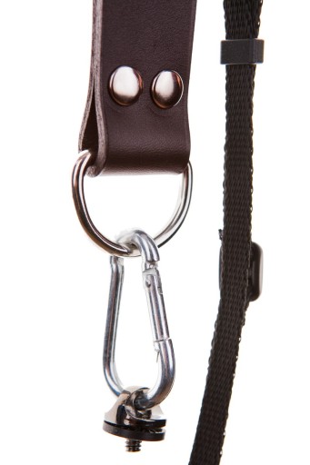 Szelki przeznaczone są dla jednego lub dwóch body. Skóra w kolorze ciemnej czekolady jest pochodzenia włoskiego, posiada piękną strukturę prawdziwej skóry licowej oraz zabezpieczona jest lakierowaną krawędzią pasa chroniąc go przed strzępieniem. Mocowanie aparatu odbywa się przez śrubę uniwersalną 1/4" oraz stalowy karabinek M6, natomiast rolę elementu przesuwnego po skórze pełni stalowy D-ring. Dodatkowym zabezpieczeniem aparatu przed wypięciem jest niezwykle wytrzymała 10mm taśma spięta karabinkiem M4. Długości pasów regulujemy za pomocą szeregu otworków natomiast rozłożenie splotu na plecach za pomocą nabijanego maszynowo nita.