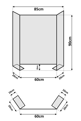 Wymiar 100cm długości (20+60+20) x 90cm wysokości - bezbarwny poliwęglan.