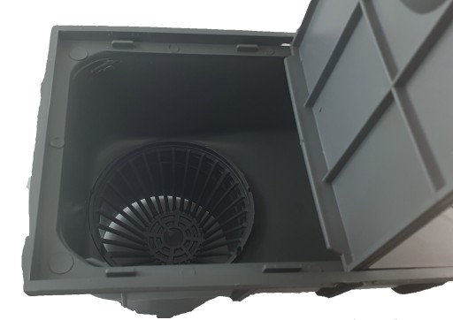 Specjalnie zaprojektowany koszyczek chroniący instalację kanalizacyjną przed dostawaniem się niepowołanych rzeczy tj.: liści, gałęzi i itp.