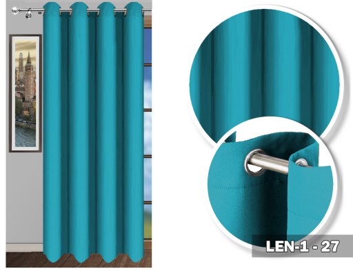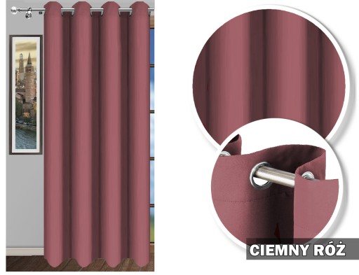 Zasłona u góry wykończona metalowymi przelotkami, brzegi obszyte.