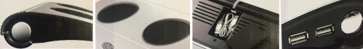 Konstrukcja wyłącznika zasilania i dodatkowy porty USB . Wbudowany podwójny hub USB pozwala na podłączenie większej liczby urządzeń USB. Podkładka posiada także schowek na kable USB co pozwala dodając jej niewielki rozmiar używać jej nawet w podróży