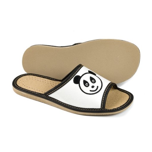 - Pantofle ozdobione zostały oprymką oraz haftem - uroczą pandą,