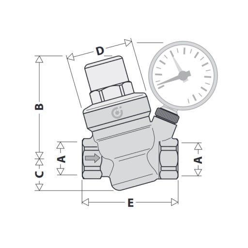 РЕДУКТОР ДАВЛЕНИЯ ВОДЫ 3/4 + МАНОМЕТР CALEFFI