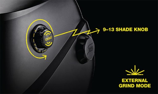 - Dostępny z zewnątrz przycisk trybu szlifowania. Tryb szlifowania z zaciemnieniem DIN 4.