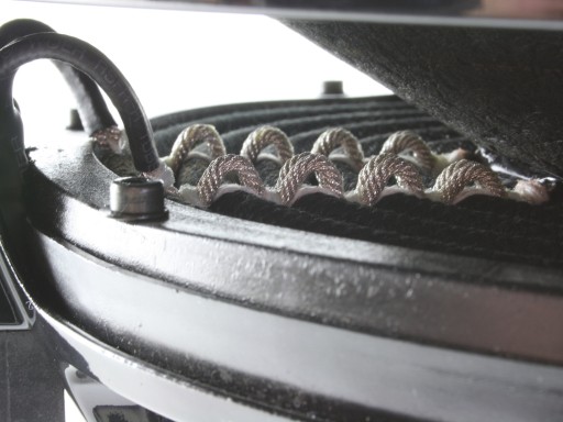 - Podwójne i niezwykle trwałe elastyczne linki przewodowe zasilające cewkę, każda o przekroju 6 mm2, przymocowane do fałdów dolnego zawieszenia.