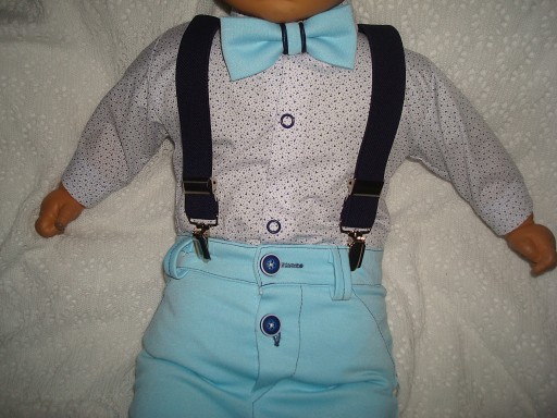 - SPODNIE BAWEŁNIANE NIEBIESKIE ELEGANCKIE TYPU SLIM W PASIE GUMKA DO REGULACJI OBWODU