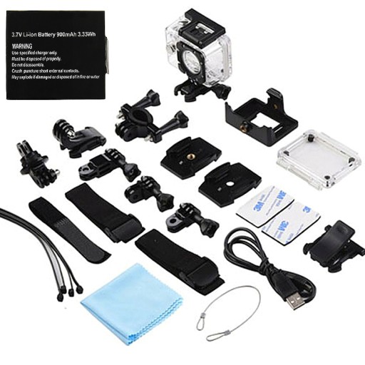 Kamera posiada obiektyw o zakresie nagrywania szerokokątnym - 170º. Stabilny i wyraźny obraz w każdych warunkach, oraz bezpieczeństwo urządzenie, gwarantuje różnorodność uchwytów i mocowań oraz wodoodporna obudowa, które są w zestawie.