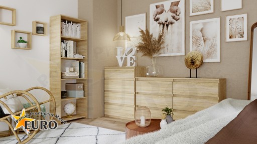 Wysokiej jakości płyta laminowana o zwiększonej odporności na zarysowania, wykończenie twardą okleiną ABS (0,6mm) zabezpieczającą mebel przed wilgocią i spełniająca kryteria najbardziej wymagających klientów.