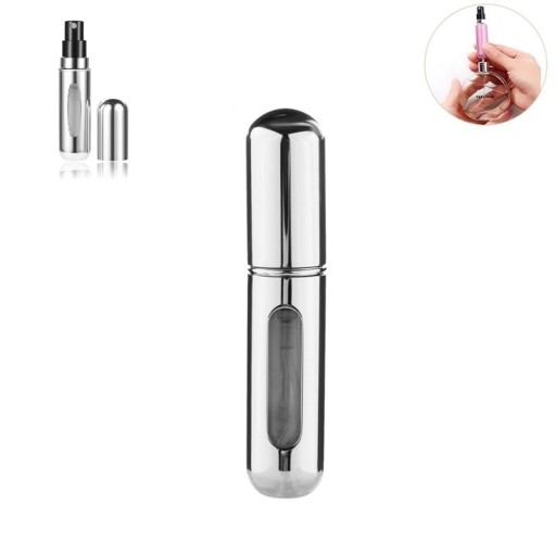 Atomizer o pojemności 5 ml w kolorze srebrny połysk.