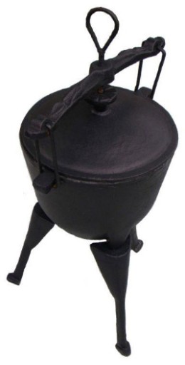Чугунный чайник, 5 литров, с завинчивающейся крышкой.